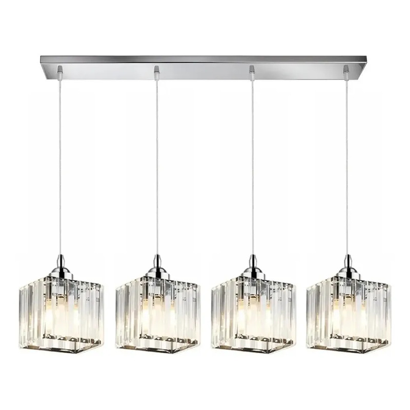 Colgante 4 Luces Prisma Cuadrado Cristal