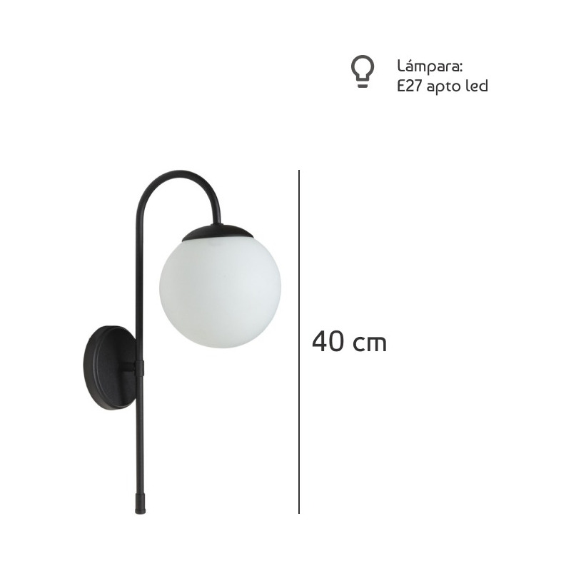 Modelo: APLIQUE CURVO LARGE NEGRO CON GLOBO OPAL