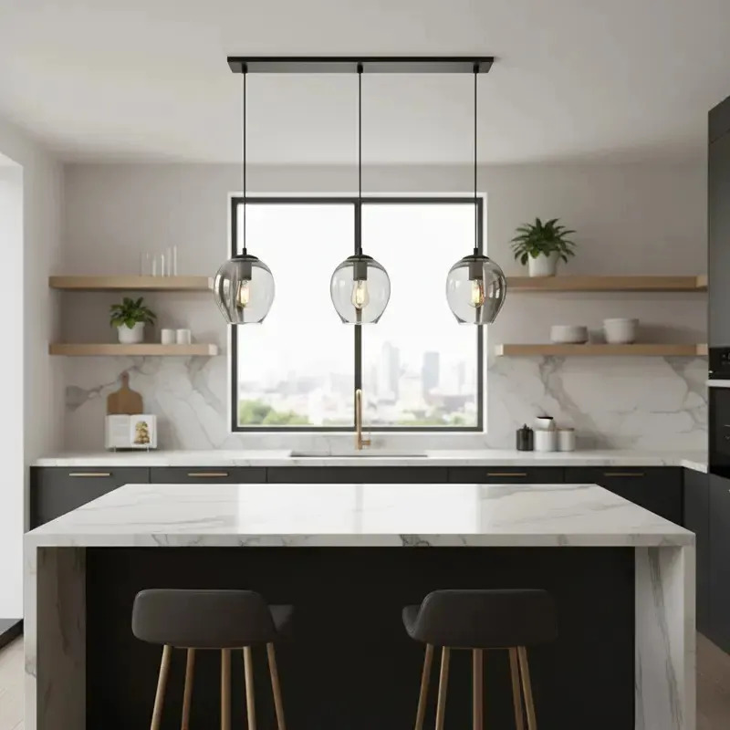 Colgante 3 Luces Ástrid Humo Apto Led Vidrio Moderno Cie Ahumado
