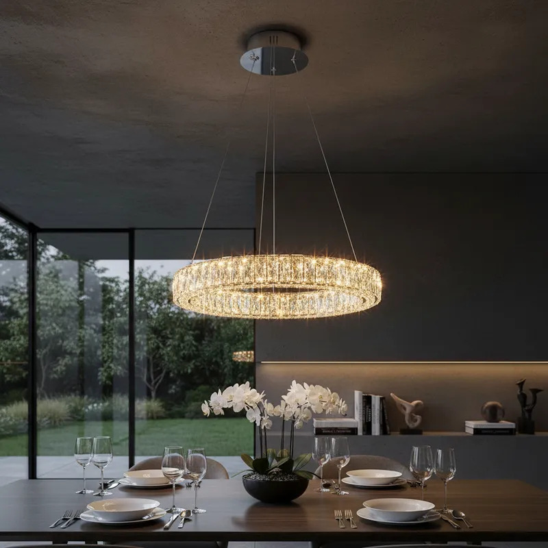 Colgante Aro LED. Luz Cálida 3000K. CRISTAL.