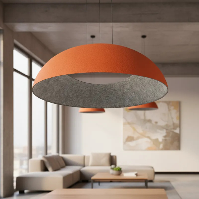 Colgante LED 72W. Temperatura de Color Variable 3000/4000/6500K. Ø50cm. Fieltro. Naranja, Interior Gris Claro