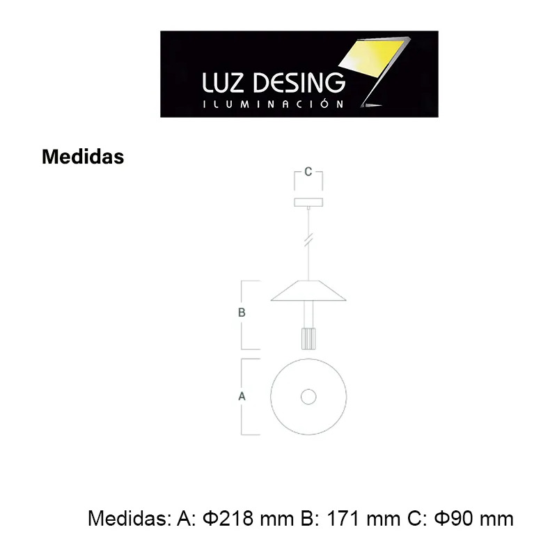 Medidas: A: 218 mm B: 171 mm C: 90 mm