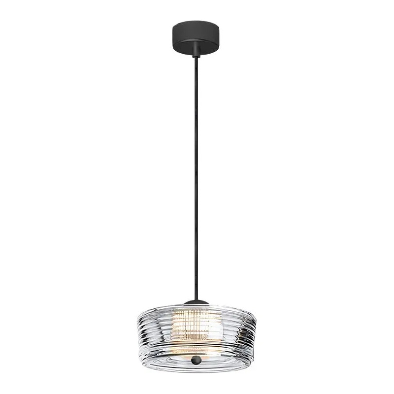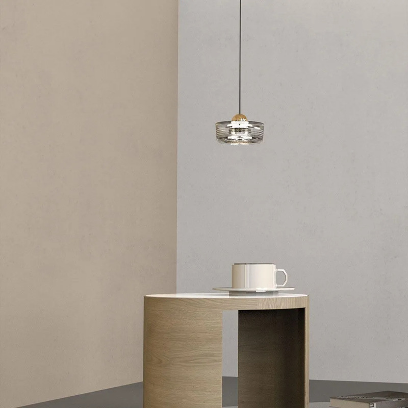 Colgante de acrílico con diseño de líneas concéntricas, que aporta