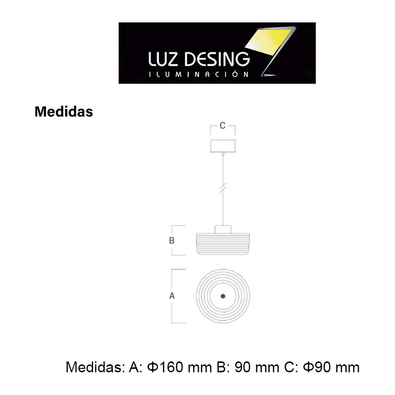 Medidas: A: 160 mm B: 90 mm C: 90 mm