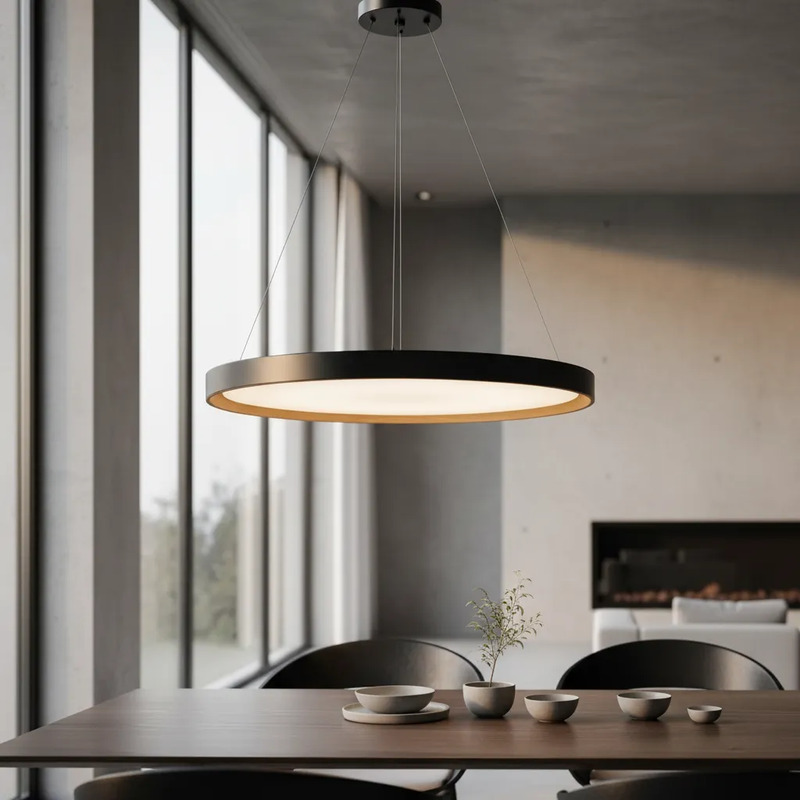 Colgante LED de diseño contemporáneo, ideal para interiores modernos que buscan estilo y versatilidad. Su composición de forma circular genera un efecto visual elegante y sofisticado, convirtiéndolo en un verdadero protagonista del ambiente.