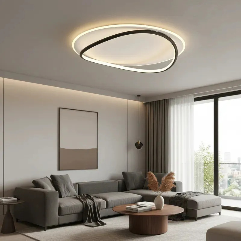 Plafón LED de diseño contemporáneo, ideal para interiores modernos que buscan estilo y versatilidad. Su composición de formas anduladas genera un efecto visual elegante y sofisticado, convirtiéndolo en un verdadero protagonista del ambiente.