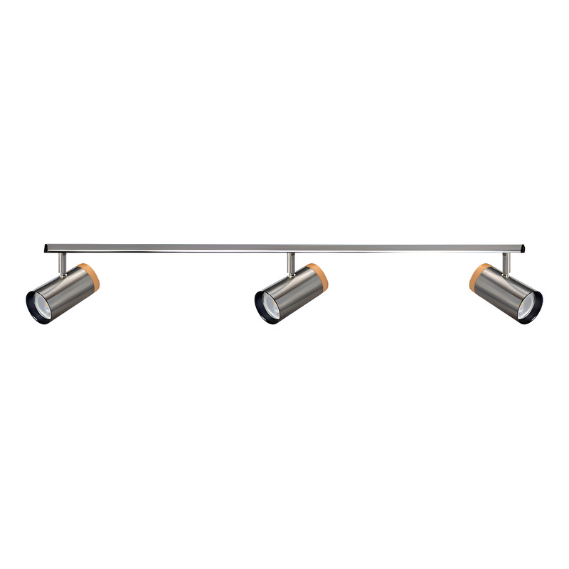 - PRODUCTO: RIEL 1 METRO CON 3 Spot Cabezal ACERO apto led gu10 dicro Con Madera